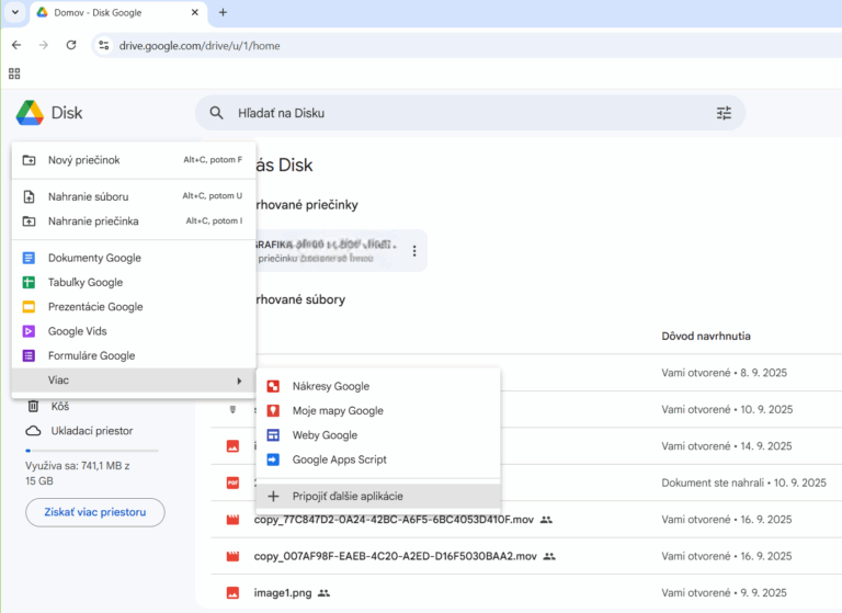 - funkcie Google drive: